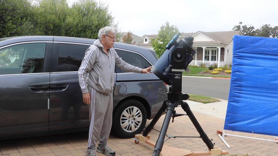 This article shows how to easily observe with a 12" telescope from your driveway. We'll show you how to move the telescope from the garage to your driveway, and how to block streetlights or house lights that interfere with viewing. The video version of this article is at URL: https://youtu.be/riRiGEAjq7I